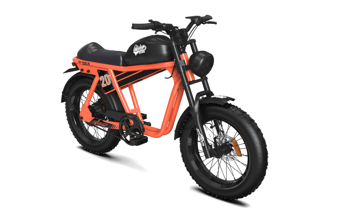 The Qiolor Tiger RL e-bike blends the classic look of 1950s American cars with California's sunny vibe. It is powered by a robust 750W motor (1200W peak) for a strong ride. It features smart controls and hydraulic disc brakes for safety. Customize your bike to show your unique style.