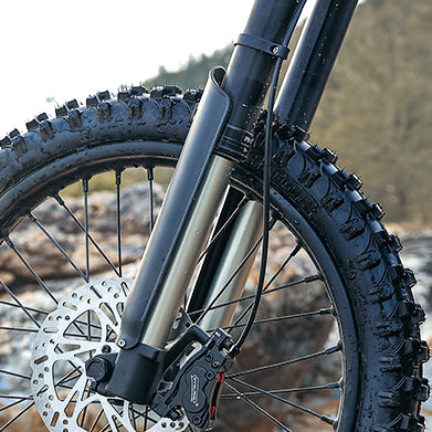 Hydraulic Disc BrakesThe hydraulic braking system, equipped with larger rotors, gives you stronger and reliable stopping power. Essential for high-speed riding, it ensures you can stop quickly and safely when it counts.  |