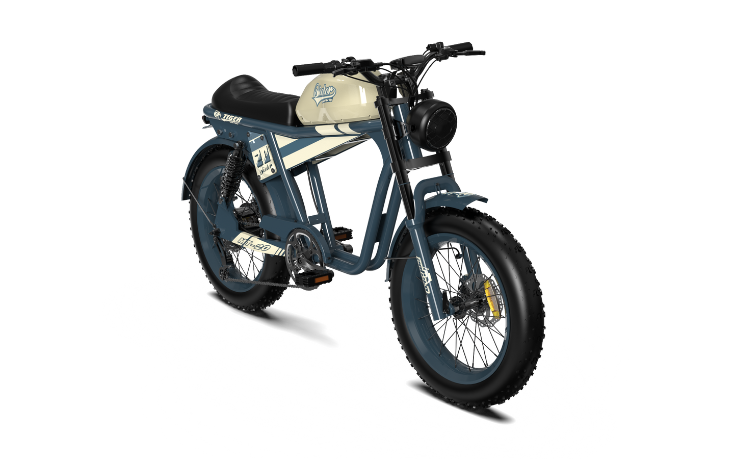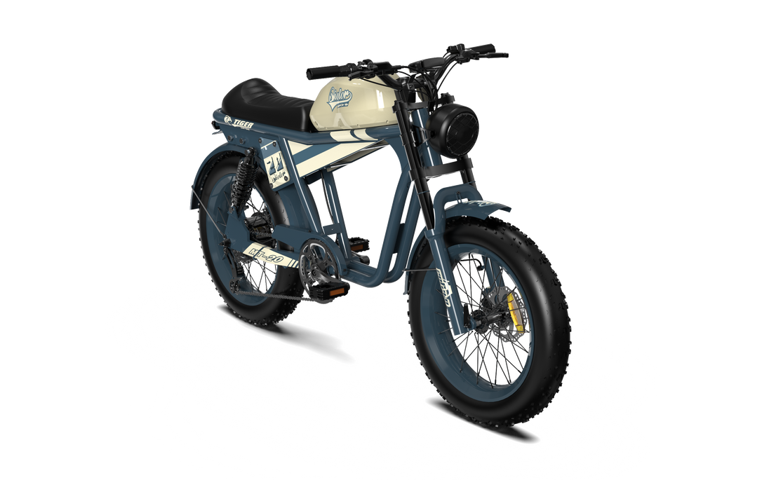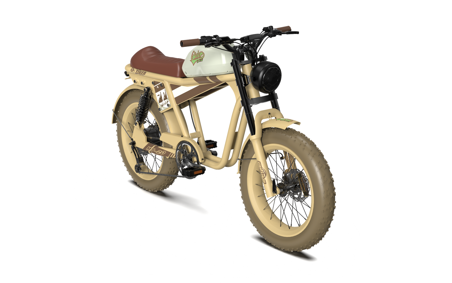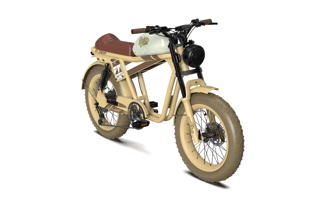 The Qiolor Tiger RE e-bike blends the classic look of 1950s American cars with California's sunny vibe. It is powered by a robust 48V drive system with a peak output of 1100W for a strong, confident ride. Multi-level pedal assist makes control intuitive